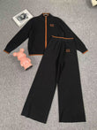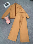Two-Piece Set Stand Collar Long-Sleeved Jacket and High Waist Straight Pants Knitted Casual Suit